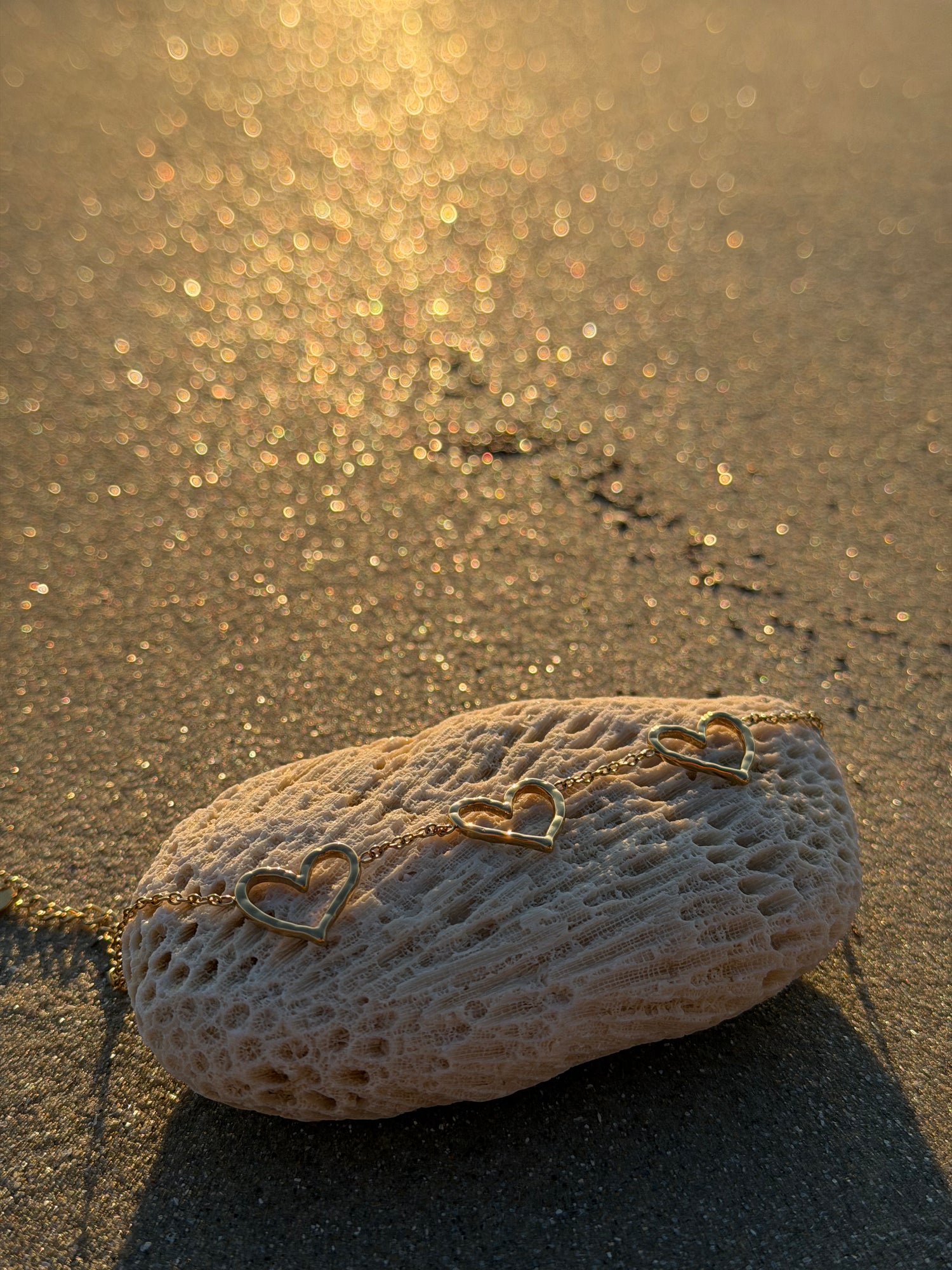 Ces bijoux sont des fragments d’océan : des coquillages, des perles, de la lumière capturée dans du métal qui ne craint ni l’eau, ni le temps.