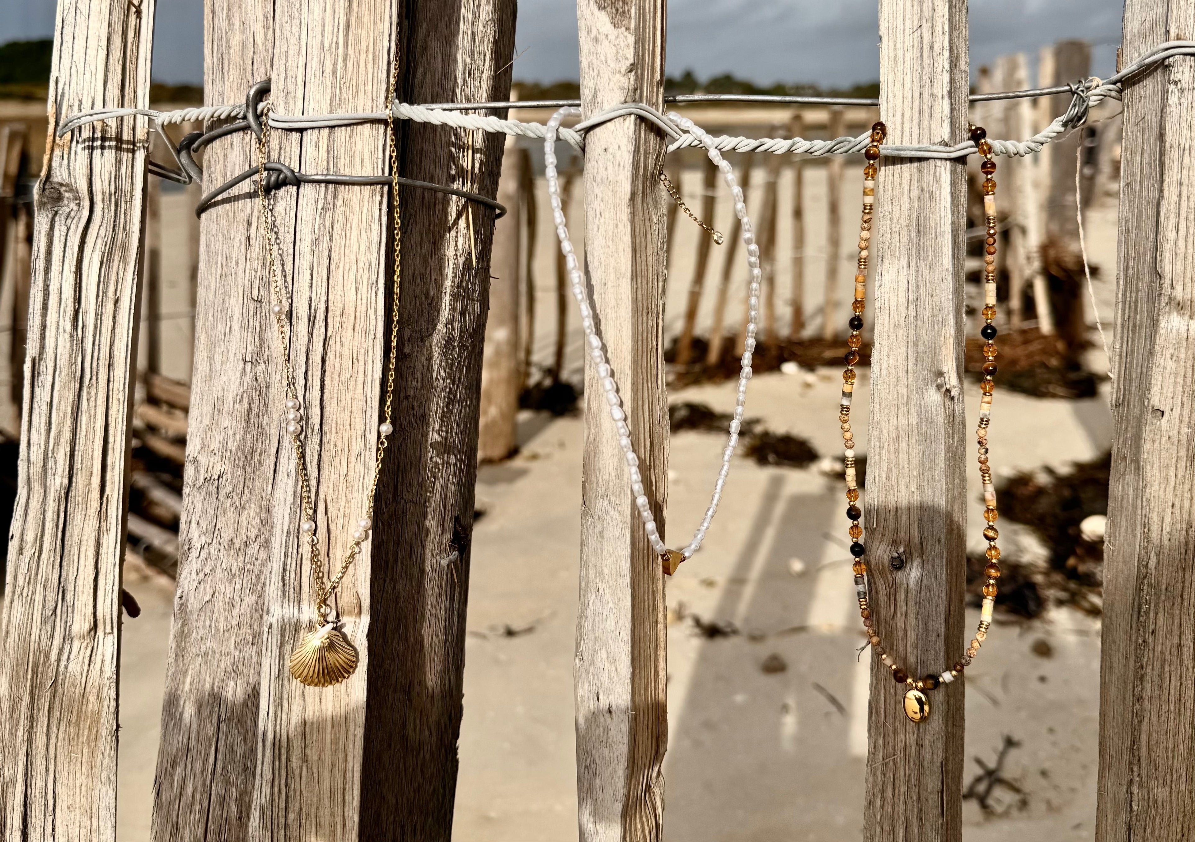 Les colliers Amour Salé sont une ode à la mer, à la lumière et à la liberté. Chaque pièce capture la poésie d’un horizon doré, la douceur d’une brise salée ou la pureté d’une perle venue des profondeurs.